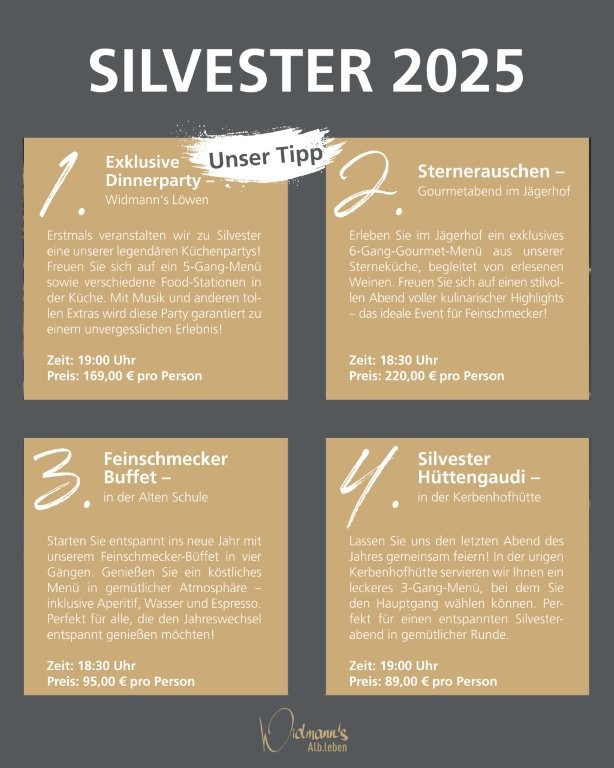 Unsere liebevoll zusammengestellten Arrangements vereinen das Beste aus Widmann’s Albleben: feinste Kulinarik, gemütliche Rückzugsorte und das ursprüngliche Lebensgefühl der Schwäbischen Alb.